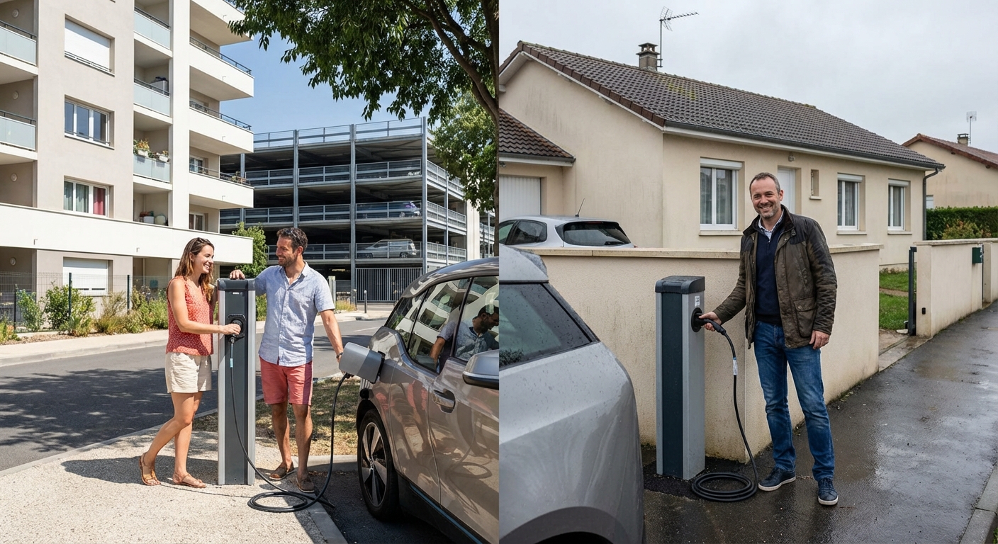 - Particulier sans parking privé : bornes rapides sur voirie/parking/commerces (ex. Polygone)